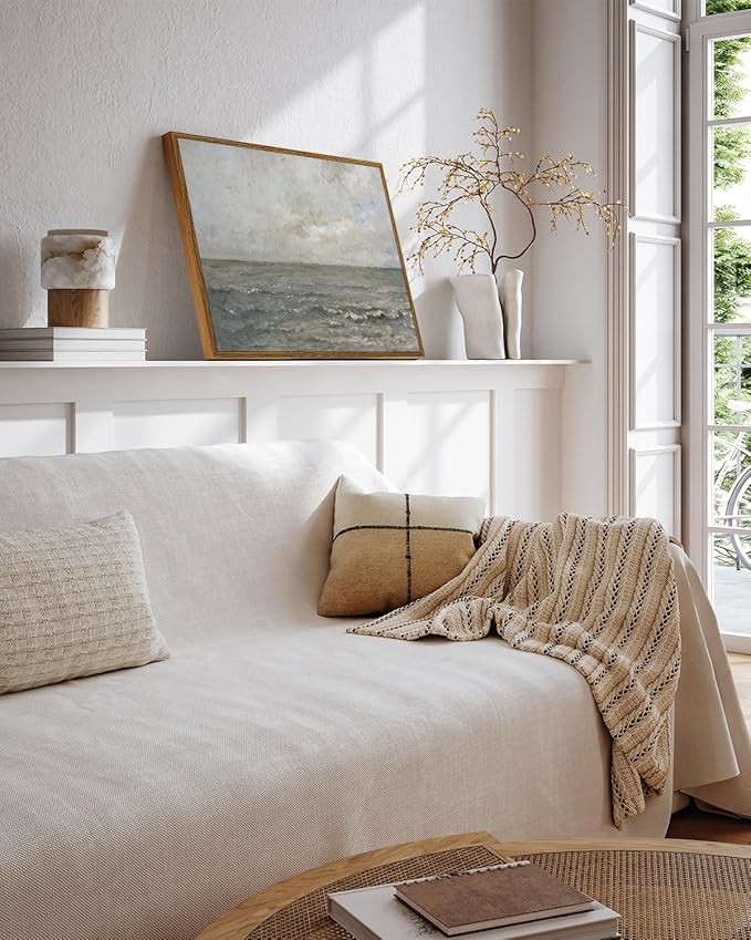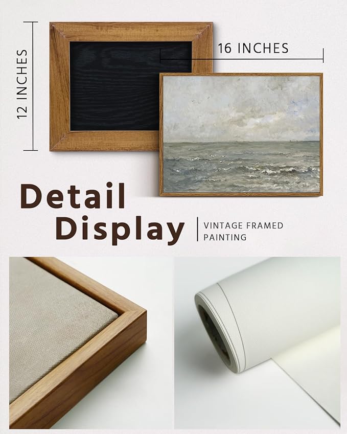 VIYYIEA Ocean Framed Wall Art, Seascape Vintage Art Decor Room Aesthetic, 12x16 Inch Canvas Print Artwork, Calming Landscape Painting Wall Decor for Bedroom Bathroom Office