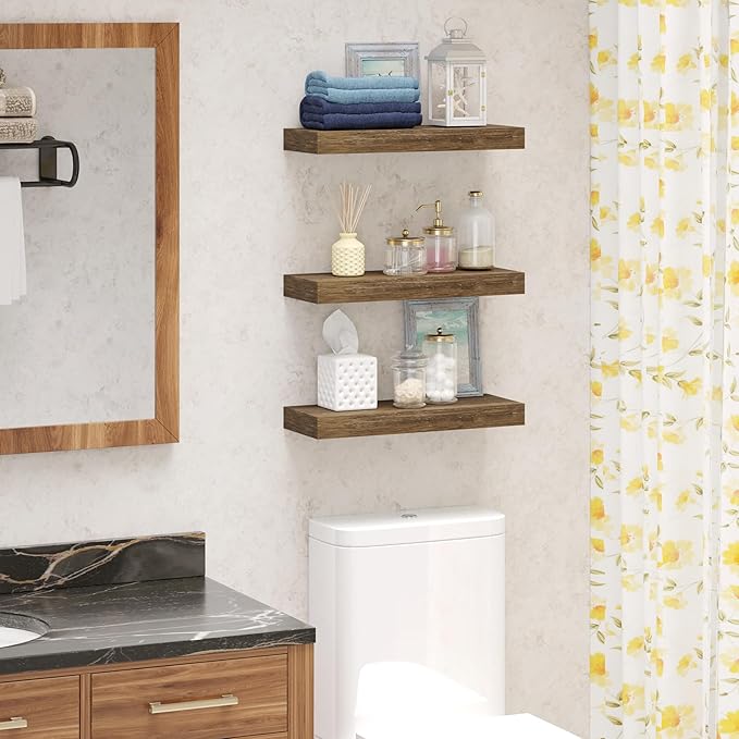 - GREAT FOR ANY ROOM: Our wood floating shelves are made of MDF with a frosted surface texture for a mordern feel that blends perfectly into a variety of different scenes; Having this small floating shelf not only for its decoration effect, but also for its high practicality; It can be used for organizing all household rooms, such as bedroom, living room, study, toilet, cloakroom, even kitchen and warehouse