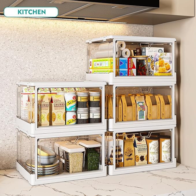 - 【Magnetic Door Design】 These clear storage bins have a magnetic door that's easy to open and close. The door keeps the boxes sealed tight, protecting items from dust, and keeping them clean and dry.