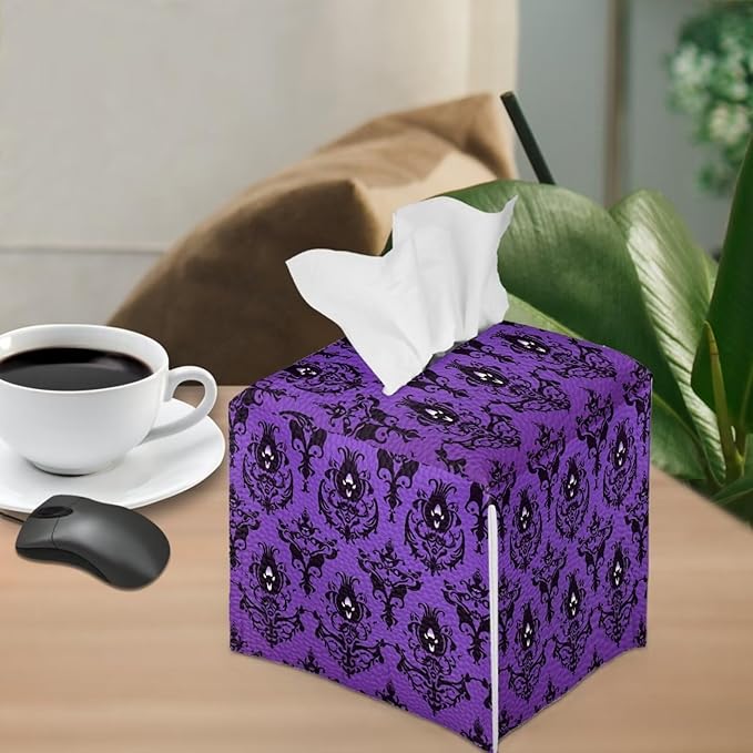 Halloween Home Decor Tissue Box Cover Square Tissue Holder for Bathroom Leather Tissue Box Holder Desk Accessories Napkin Organizer Dispenser Tissue Cube Box Cover Purple