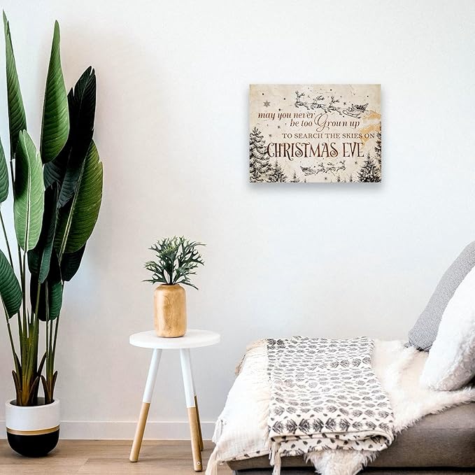 WODMIS Christmas Wall Decor,Farmhouse Christmas Decor,Christmas Signs Framed Canvas Wall Art,Christmas Eve Canvas Wall Art Home Decorations,May You Never Be Too Grown Up To Search Wall Decor 11x14