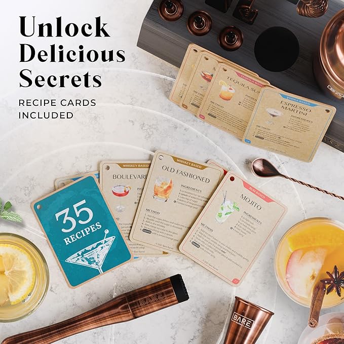 - ✔ ENDLESS TASTY RECIPES » Includes 35 recipe cards, so whether you fancy the taste of whiskey, vodka, rum, gin or tequila, you're covered! Enjoy an Old Fashioned, Margarita, Martini, Mojito...