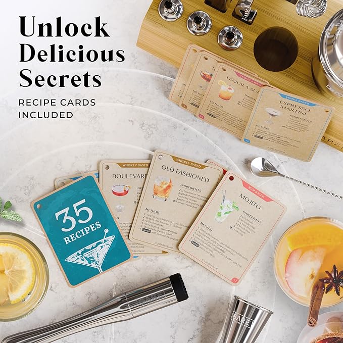 - ✔ ENDLESS TASTY RECIPES » Includes 35 recipe cards, so whether you fancy the taste of whiskey, vodka, rum, gin or tequila, you're covered! Enjoy an Old Fashioned, Margarita, Martini, Mojito...
