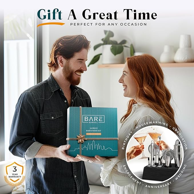 - ✔ GIFT A GREAT TIME » Makes for the perfect couples cocktail kit gift set for men & women, whether an amateur starter mixologist or a pro barman. Treat your boyfriend, girlfriend, husband, wife, fiancé, father, mother or work collegue.
