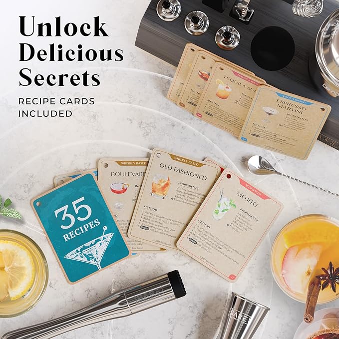 - ✔ ENDLESS TASTY RECIPES » Includes 35 recipe cards, so whether you fancy the taste of whiskey, vodka, rum, gin or tequila, you're covered! Enjoy an Old Fashioned, Margarita, Martini, Mojito...