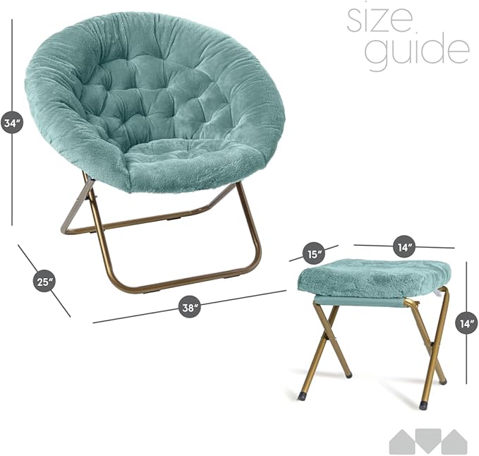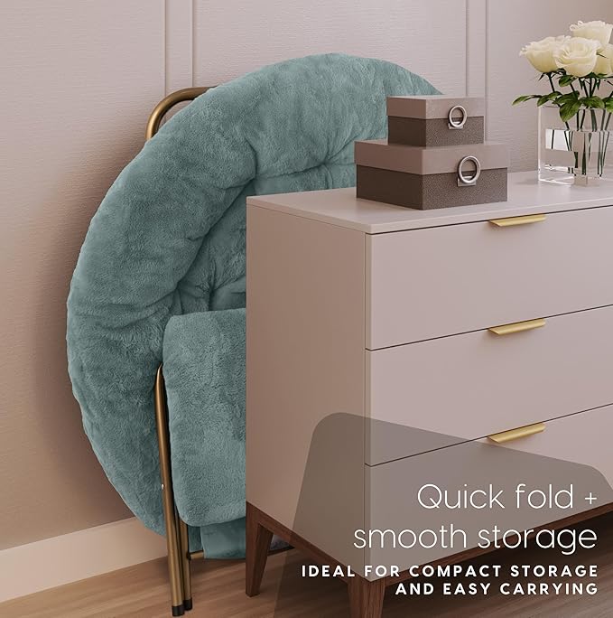- Quick And Easy: Enjoy your new chair as soon as it arrives! Folds for convenient storage and easy transportation – because you’ll never want to be without it once you try it. Features faux fur fabric on a sturdy metal frame and measures 38” x 25” x 34”.