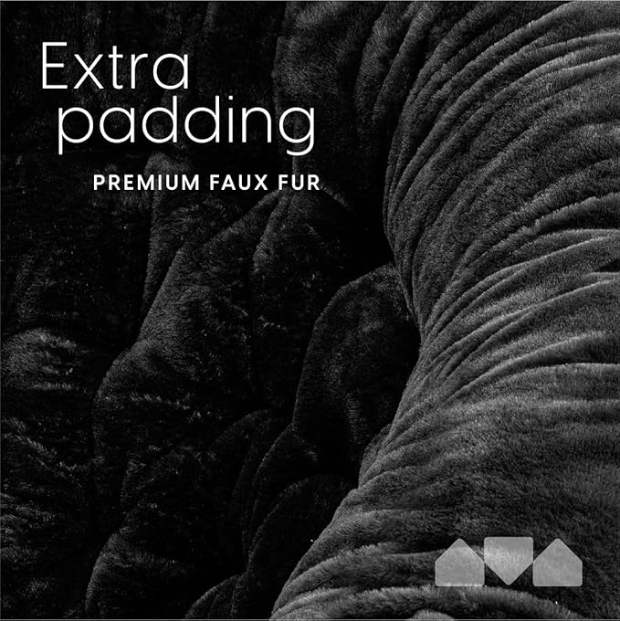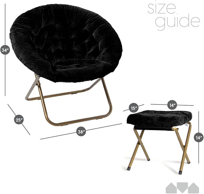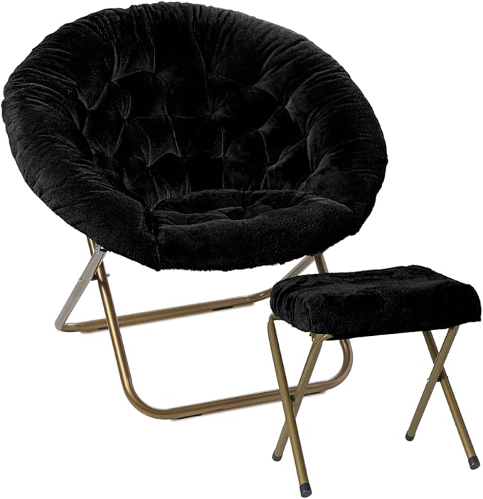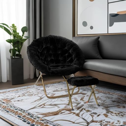Milliard Cozy Chair with Footrest Ottoman/Faux Fur Saucer Chair for Bedroom/X-Large (Black)