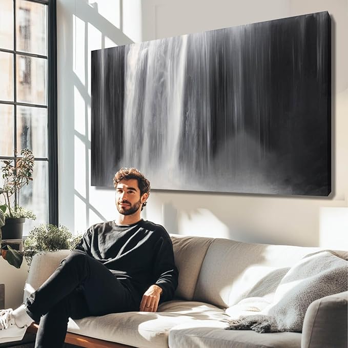 Abstract Waterfall Picture Living Room Decor Abstract Wall Art Black and White Artwork Modern Office Home Decor 20X40 Inch