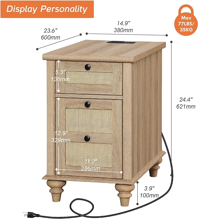 - 【Large Storage Space】This rattan nightstand with charging station is designed with one rattan drawers and one storage cabinet, perfect for storing your personal items. Both can as a nightstand in your bedroom and a sofa side table in your living room, perfect for small space extra storage. The drawer is equipped with smooth metal slides for effortless opening.