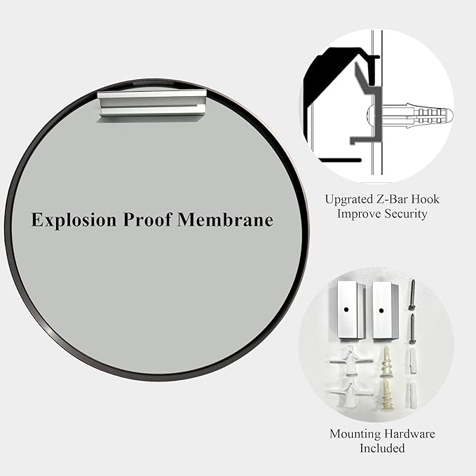 - 【Explosion-proof membrane】A full-coverage backing of shatter-resistant film that keeps glass secure in case of breakage. Even if the circle wall mirror is accidentally damaged by external forces, the glass will not splash out.
