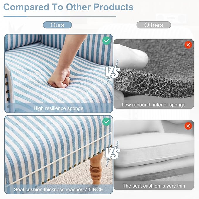 - Classic Feature Chair: The subtle slope of the cushions, the armrests with piping details, and the T-shaped seat cushion in high-resilience foam add an elegant touch to your living room, bedroom, entryway or dining room, etc