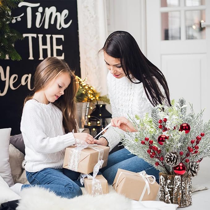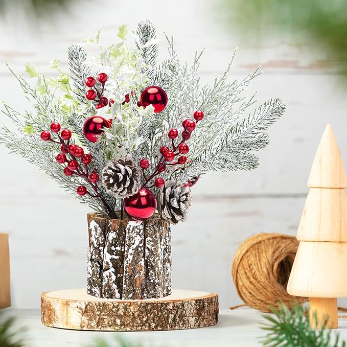 - Mini Tabletop Christmas Tree:This 14Inch artificial small tree use the artificial branch and tree stump shaped base , embellished with lifelike red berry, pine cone and Christmas ball. In order to ensure the safety of logistics and distribution products, our packaging has been optimized. Each branch is made of iron with good flexibility. You only need to DIY adjust the pine branches to show the perfect little Christmas tree.