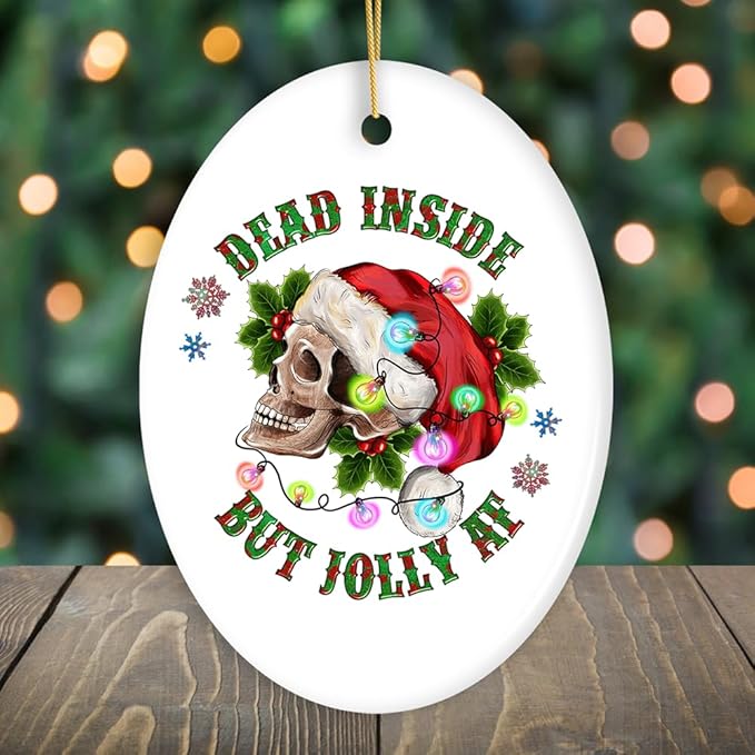 Cheerfully Grim Festive Emo Skeleton Funny Christmas Ornament, Dead Inside but Jolly AF