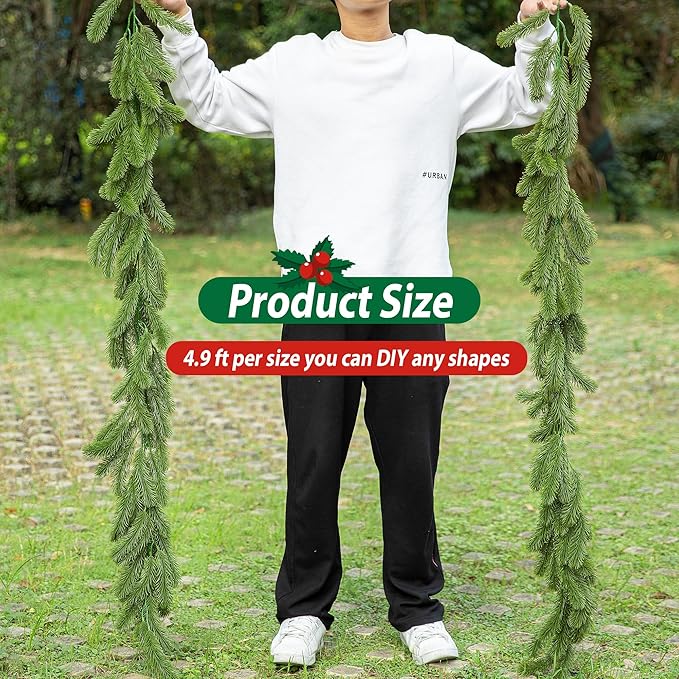 - Size Detail: You will receive 2 pcs single fork Christmas garland, each length measure about 4.9ft, sufficient length to suit your festive setting, adding a green vitality.
