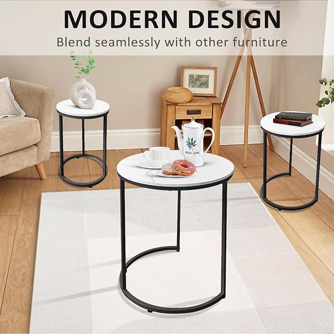 - 【Suitable size for any space】 This 3 piece coffee table set includes a large coffee table,a medium coffee table and a small coffee table. Large coffee table: 20.47''D x 24.4''H. Medium coffee table: 15.75''D x 21.65''H.Small coffee table: 12''D x 18.9''H.