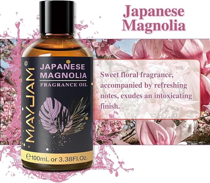 MAYJAM 100ML/3.38FL.OZ Japanese Magnolia Fragrance Oils with Glass Dropper, Essential Oils for Diffusers for Home, Long Lasting Scented Oils for Diffusers Soap Candle Making