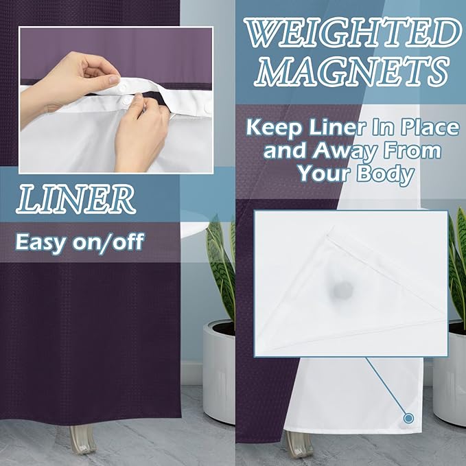 Purple Stall Hotel Style Shower Curtain with Snap in Liner - 230GSM Waffle Textured,Hotel Grade,Spa Like Bath Curtain,54W x 80H