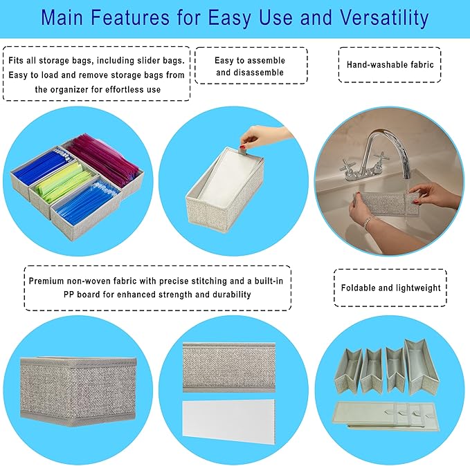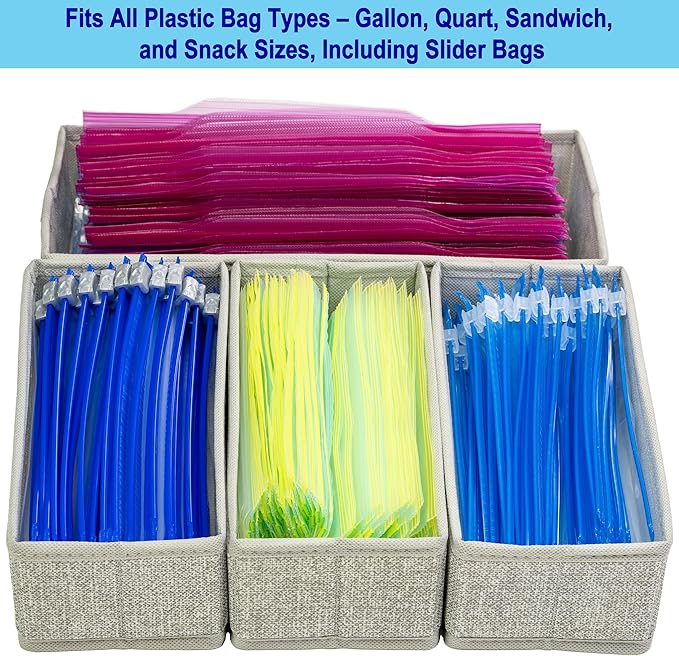- Great for Food Storage Bags of All Types: Fits Gallon, Quart, Sandwich, Snack, and even slider bags – finally a dedicated place for every size.