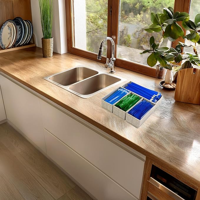 - Complete Kitchen Drawer Organization: Declutter your drawers with this 4-piece organizer set – ideal for bags, silverware, utensils, and more.