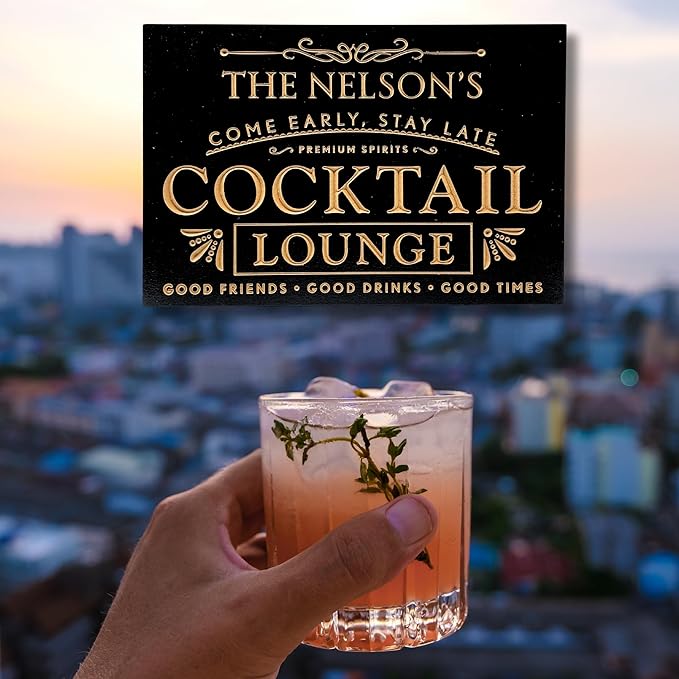 - MADE IN THE USA: Our cocktail lounge signs are made to last for years. Our stylish bar decor will not peel or fade as ordinary printed signs can. Our carved wooden signs will be the perfect bar accessories for the home bar set!
