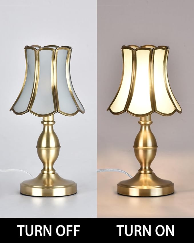 - Design: Hand-welded glass shade with frosted glass effect, 6.7 inches in diameter, brass base, heavy and textured, simple and noble, the switch is located on the connecting wire, easy to operate.