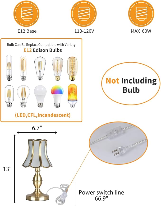 - Bulb Requirements: Compatible with all E12 base bulbs, such as LED, incandescent, CFL, or smart bulbs.