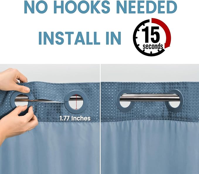 - 【Thick "Cotton" Type Fabric Shower Curtain】Made from expertly chosen and tested Heavyweight Polyester Fabric, touches like a cotton feel. 230GSM (Gram Per Square Meter), about 0.8 pounds heavier than normal 90GSM fabric shower curtains; Honeycomb waffle weave pattern adds elegance to your bathroom