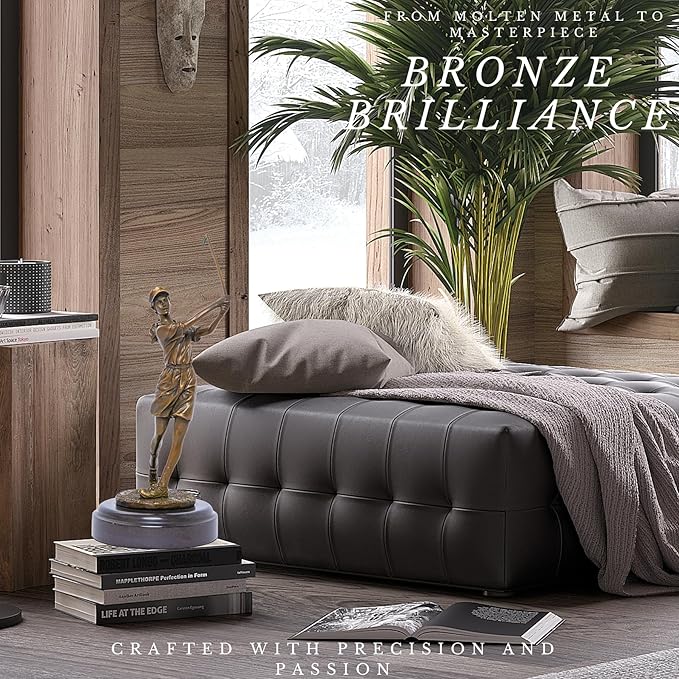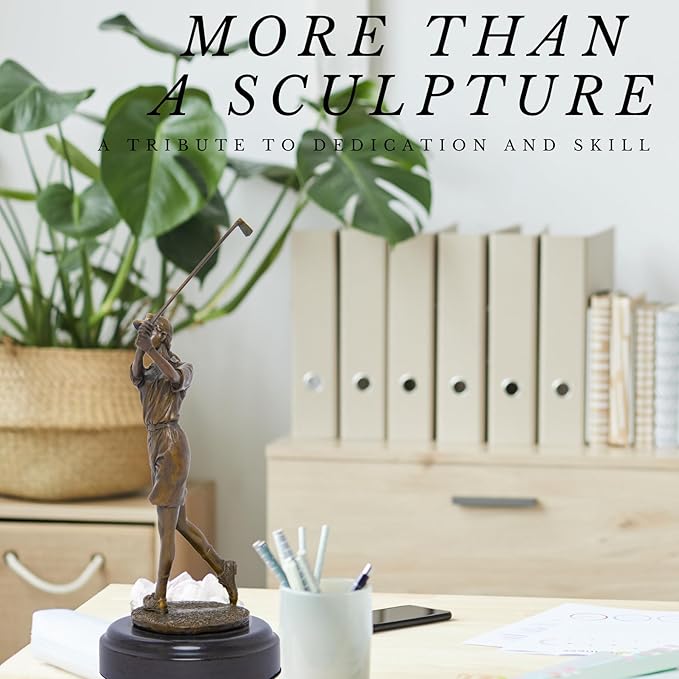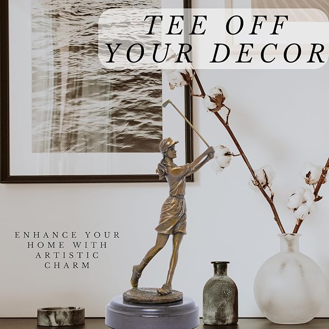 9.8" Bronze Golfer Girl Statue, Golf Figurines Bronze Statues and Sculptures Handmade Art Collectible for Home Office Decor