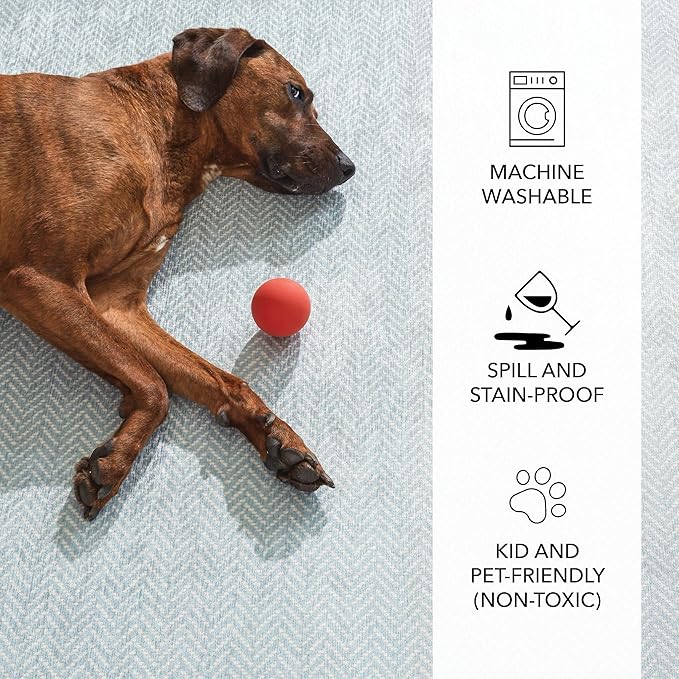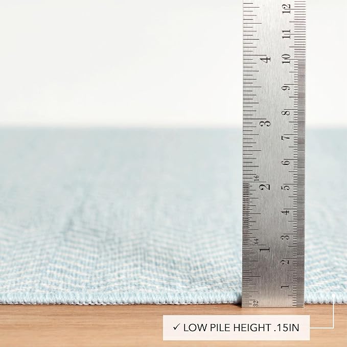 Dash and Albert Herringbone Machine Washable Area Rug - 6' x 9' Swedish Blue - Geometric Accent Rug - Anti-Slip Backing, Lightweight, Machine Washable, High Traffic Areas Kitchen, Mudroom, Entryway
