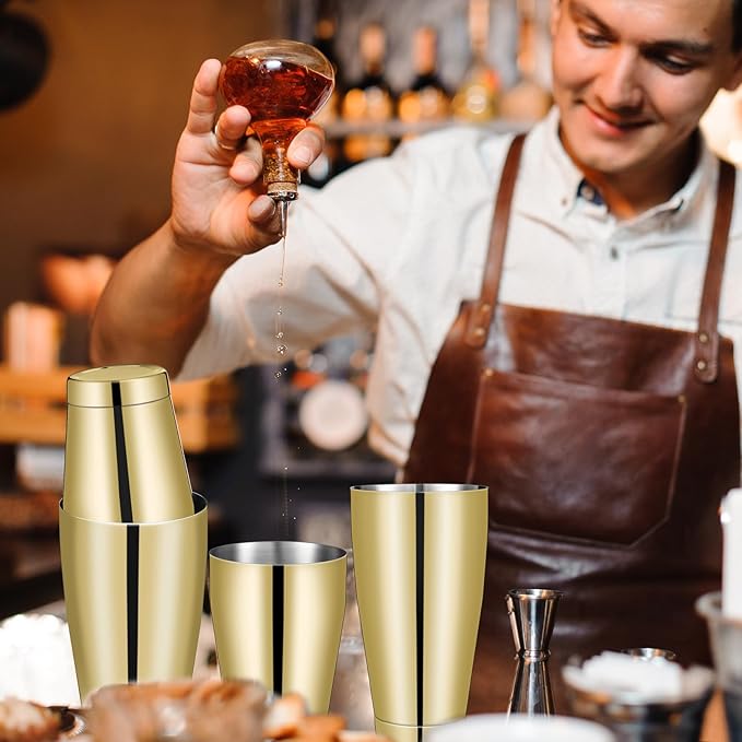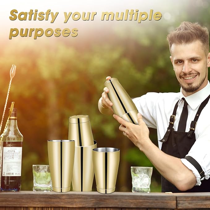 Sabary 6 Pcs Cocktail Shakers Professional Bar Shaker Boston Set Stainless Steel Martini Drink Mixer Basic Tool Weighted Shake Metal Can Cocktail Shaker Set, 18 Oz, 28 oz (Gold)
