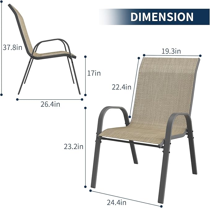 - 【ALL WEATHER & CAREFREE】 Fade-resistant textilene offers excellent durablity and keeps these comfortable outdoor chairs like brand new for a long time. It will add an instant focal point to your yard, and decorate your home season after season.