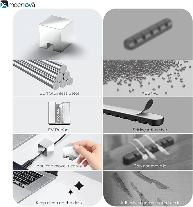 Meenova Cord Organizer 304 Stainless Steel Cable Holder, Cable Management Aesthetic Cute Desk Accessories, Office Computer Desk Organizers, Cord Management, Charging Wire Nightstand Organizer