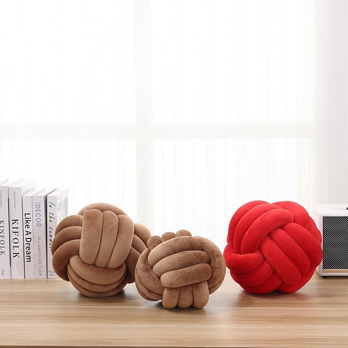 Petrella Knot Pillow Ball Round Throw Pillows Home Decor Cushion Decorative Aesthetic Throw Pillows,Coffee 8inch