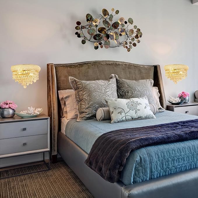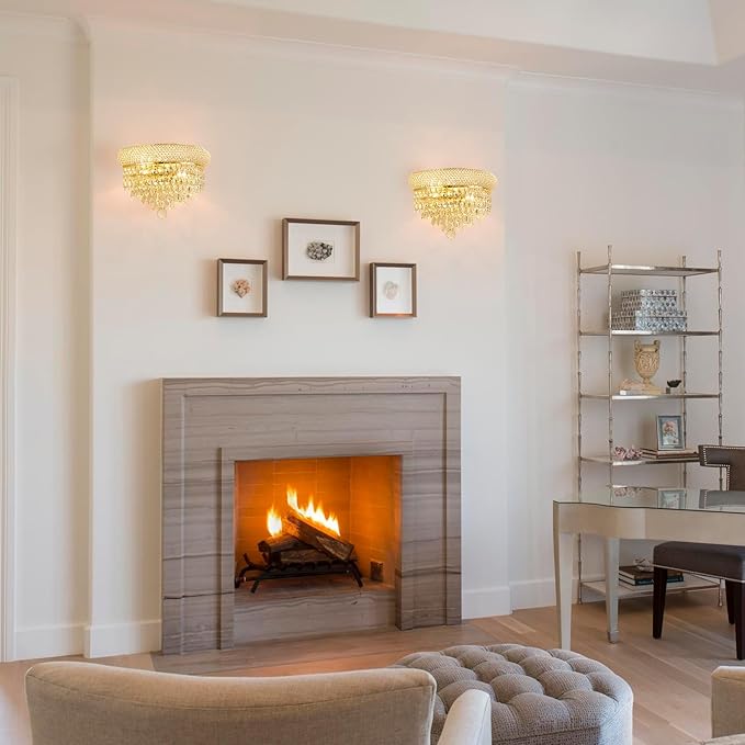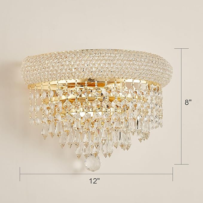 2-Lights Crystal Icicle Prisms Drops Wall Sconce Light for Living Room Dining Room Bathroom Vanity Mirrors Hallway Bedroom Closet Stairway(Gold)