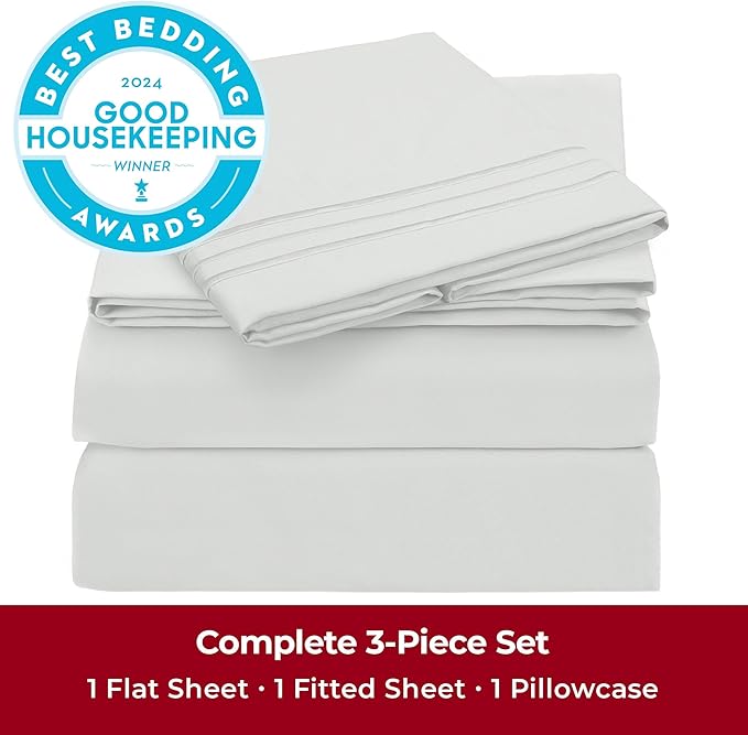 - Complete 3-Piece Twin XL Bedding Set - Includes 1 Fitted Sheet (39"x80"x16"), 1 Flat Sheet (66"x102"), & 1 Pillowcase (20"x30") - all crafted from double-brushed microfiber for an ultra-soft feel. Temperature-regulating to keep you cozy in winter and cool in summer.
