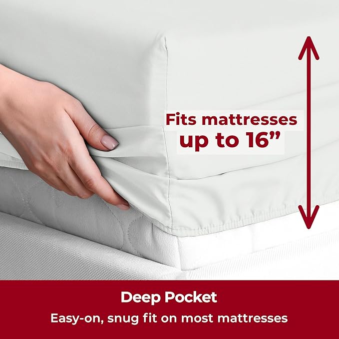 - Perfect Fit & Certified Safe - Deep pockets fit mattresses up to 16" deep, making them ideal for memory foam toppers, air mattresses, and more. A sewn-in elastic band ensures a snug, secure fit. OEKO-TEX(R) STANDARD 100 certified (22.HUS.40891, Hohenstein), tested for over 1,000 harmful substances for your peace of mind.