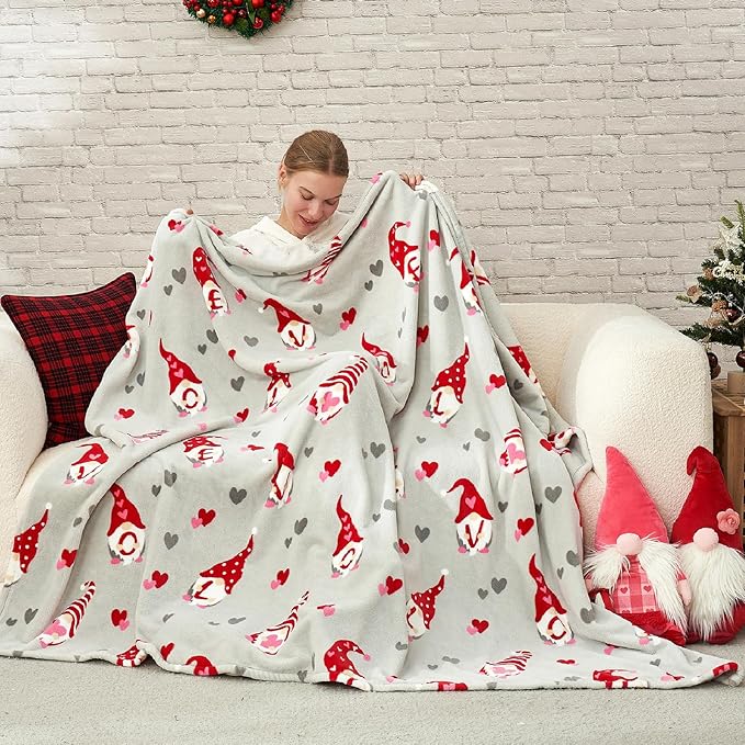 Cozy Bliss Gnome Love Heart Blanket Gift Ultra Soft Milkyplush™ Throw Blanket Cute gnome Pattern Heart Blankets for her Birthday Gift Blankets(Gnome Love,60"x80")