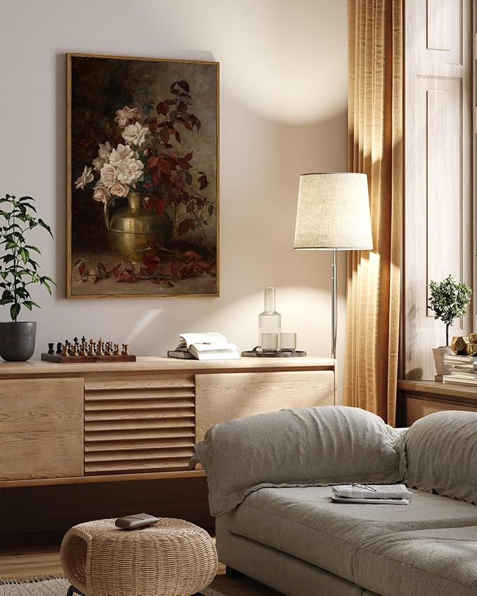 - VINTAGE ARTWORK FOR WALLS: The painting's composition creates a harmonious balance, with the pastel hues of the roses contrasting against the rich golden tones of the vase, resulting in a visually captivating and harmonious arrangement. With their timeless appeal, these vintage wall art add an elegant and nostalgic touch to any space, making them a perfect choice for art enthusiasts and classical painting lovers alike