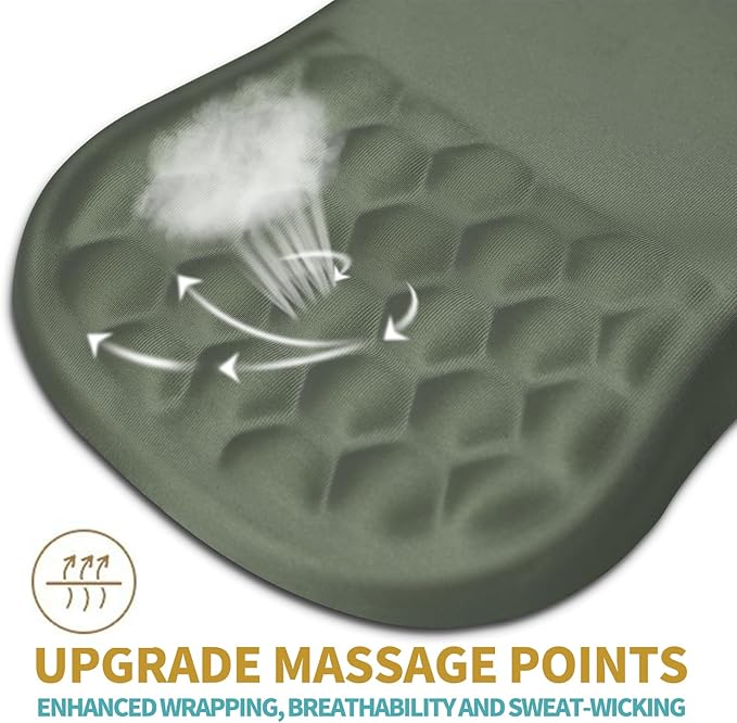- 【Ergonomic Massage Design】The innovative ergonomic 8-degree slope and massage bump design perfectly support the wrist and palm. Massage bump design can effectively relieve wrist pain and fatigue, improve carpal tunnel syndrome (CTS), strengthen the air circulation between wrist and mouse pad, prevent sweating, and keep your wrist in the most comfortable state.