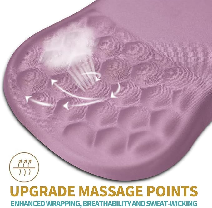 - 【Ergonomic Massage Design】The innovative ergonomic 8-degree slope and massage bump design perfectly support the wrist and palm. Massage bump design can effectively relieve wrist pain and fatigue, improve carpal tunnel syndrome (CTS), strengthen the air circulation between wrist and mouse pad, prevent sweating, and keep your wrist in the most comfortable state.