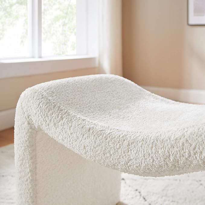 Modern Boucle Ottoman, Vanity Stool Chair, Foot Stool with Wooden Legs Sofa Bench Footstool Extra Seat for Vanity, Makeup Room, Living Room, Entryway, Set 2, White
