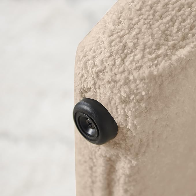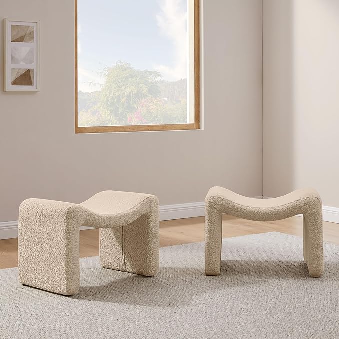 Modern Boucle Ottoman, Vanity Stool Chair, Foot Stool with Wooden Legs Sofa Bench Footstool Extra Seat for Vanity, Makeup Room, Living Room, Entryway, Set 2, Camel