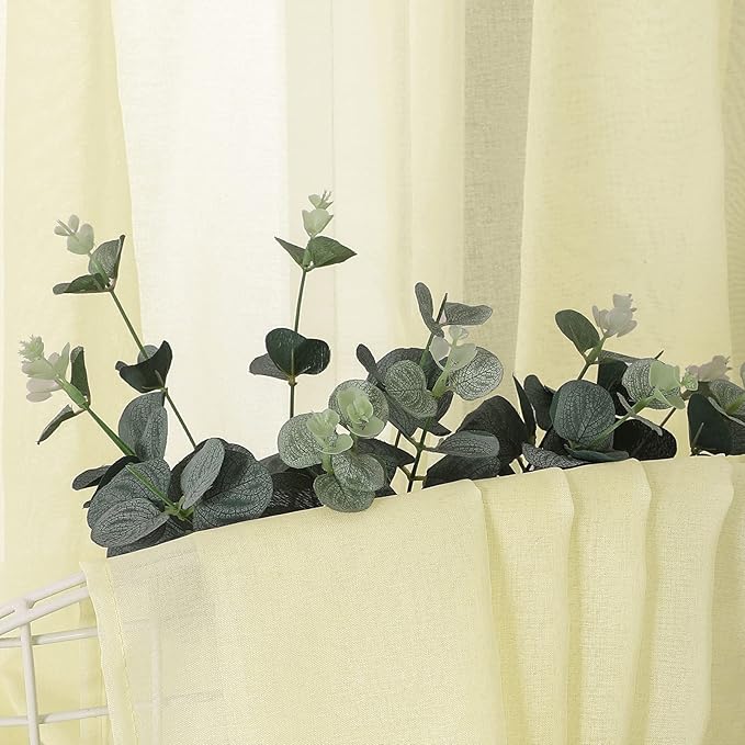 Tollpiz Sheer Curtains Living Room Linen Textured Curtain Sheers Light Filtering Voile Rod Pocket Curtains for Bedroom, 38 x 63 inches Long, Transparent Yellow, Set of 2 Panels