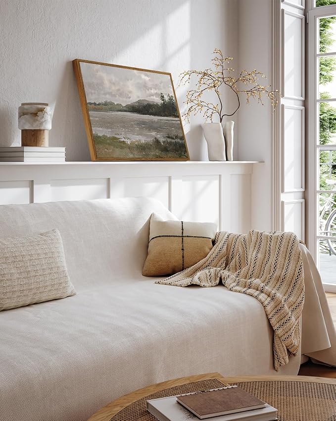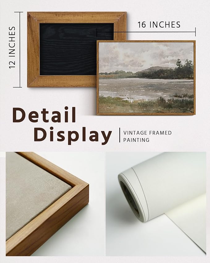 - VINTAGE ARTWORK FOR WALLS: The vintage wall decor painting captures the idyllic beauty of nature's masterpiece, where the tranquil waters of the lake meet the distant mountains in a harmonious union. With their timeless appeal, these vintage wall art add an elegant and nostalgic touch to any space, making them a perfect choice for art enthusiasts and classical paintings lovers alike
