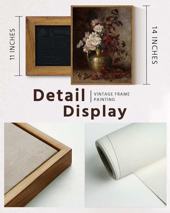 VIYYIEA Vintage Floral Framed Wall Art, Rose Bouquet Flower Paintings Decor Aesthetic, Canvas Print Artwork, Still Life Retro Wall Pictures for Bedroom Living Room, 11x14 Inch