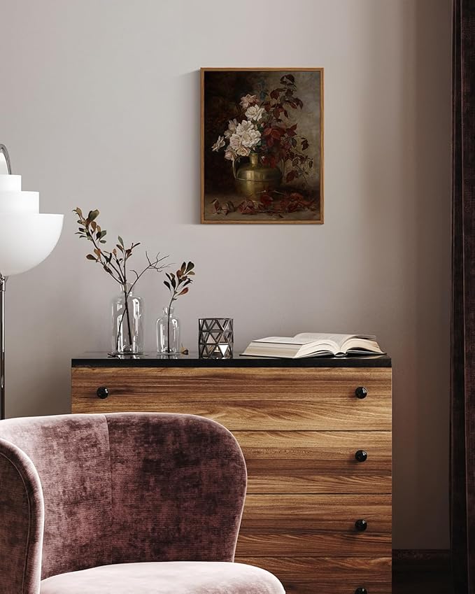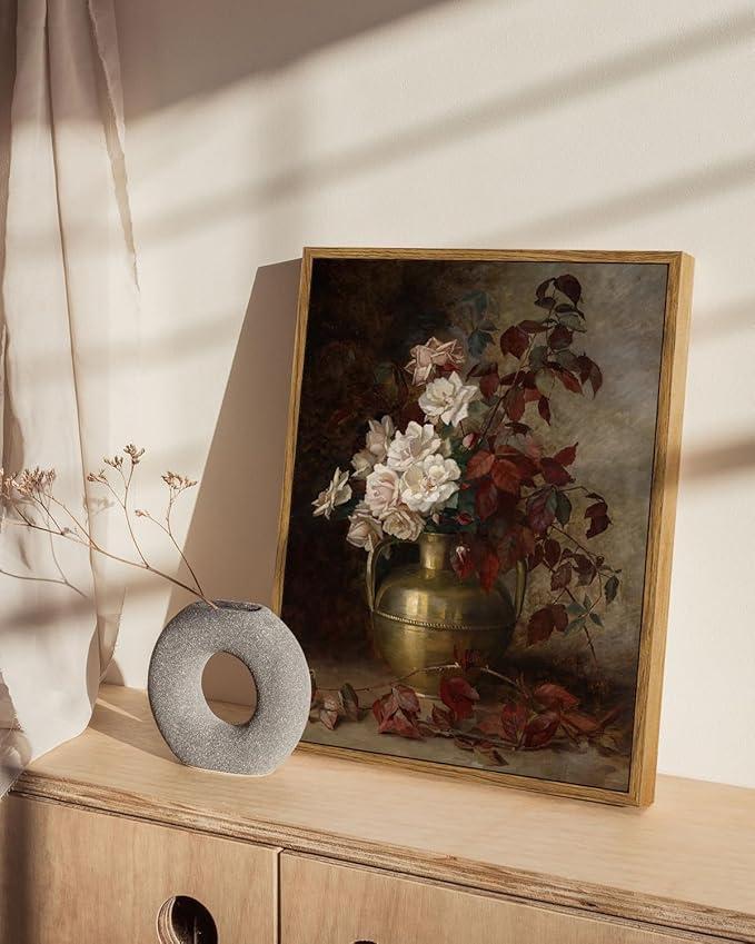 - VINTAGE ARTWORK FOR WALLS: The painting's composition creates a harmonious balance, with the pastel hues of the roses contrasting against the rich golden tones of the vase, resulting in a visually captivating and harmonious arrangement. With their timeless appeal, these vintage wall art add an elegant and nostalgic touch to any space, making them a perfect choice for art enthusiasts and classical painting lovers alike