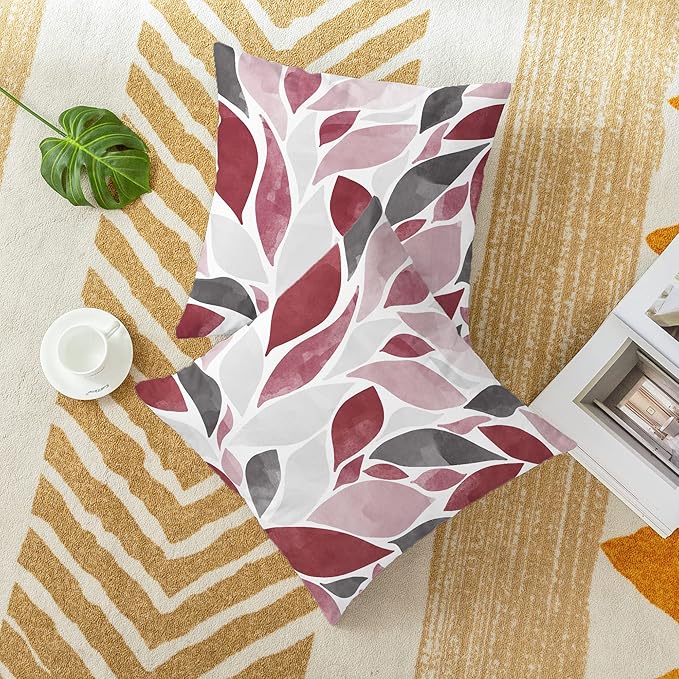 CaliTime Throw Pillow Cases Pack of 2 Cozy Fleece Falling Dahlia Floral Flowers Petals Decorative Cushion Covers for Couch Bed Sofa Farmhouse Decoration 20 X 20 Inches Burgundy Pink Grey