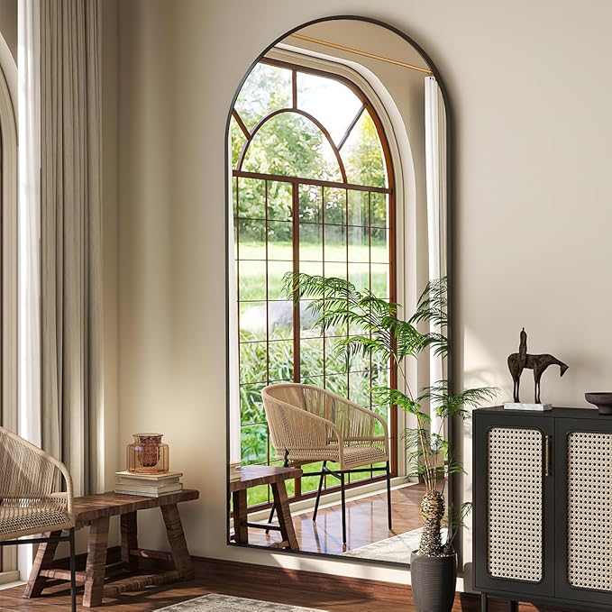 - Arched Full Length Mirror:76" x 34" Arched Mirror Floor Standing Large Mirror is not only convenient for you to enjoy your whole body, but also make your space more beautiful. Whether you want to make a small space bigger or add a touch of luxury to your home, this floor standing mirror can bring you a new visual experience