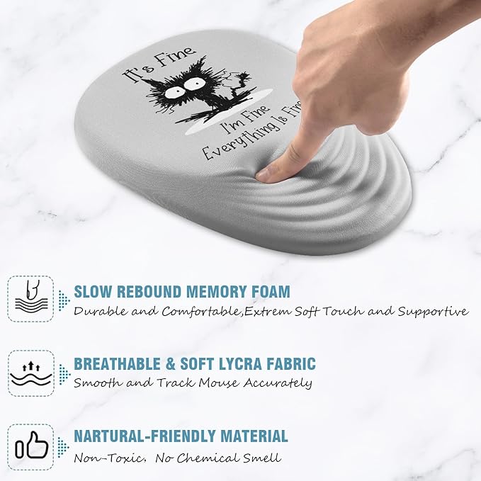 Mouse Pad, Ergonomic Mouse Pad with Wrist Rest Support and Non-Slip PU Base, Desktop Mousepad for Pain Relief, Computer, Office & Home, Grey Cat I'm Fine