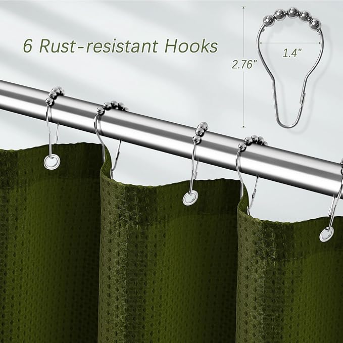 - 🛀【Thick & Heavy Duty】 Our waffle weave shower curtain is made of premium polyester fiber, after weighting up to 256 GSM, this shower curtain tend to be thicker, more robust and longer lasting than ordinary 90GSM fabric shower curtain, offer greater privacy and won't move around as much.